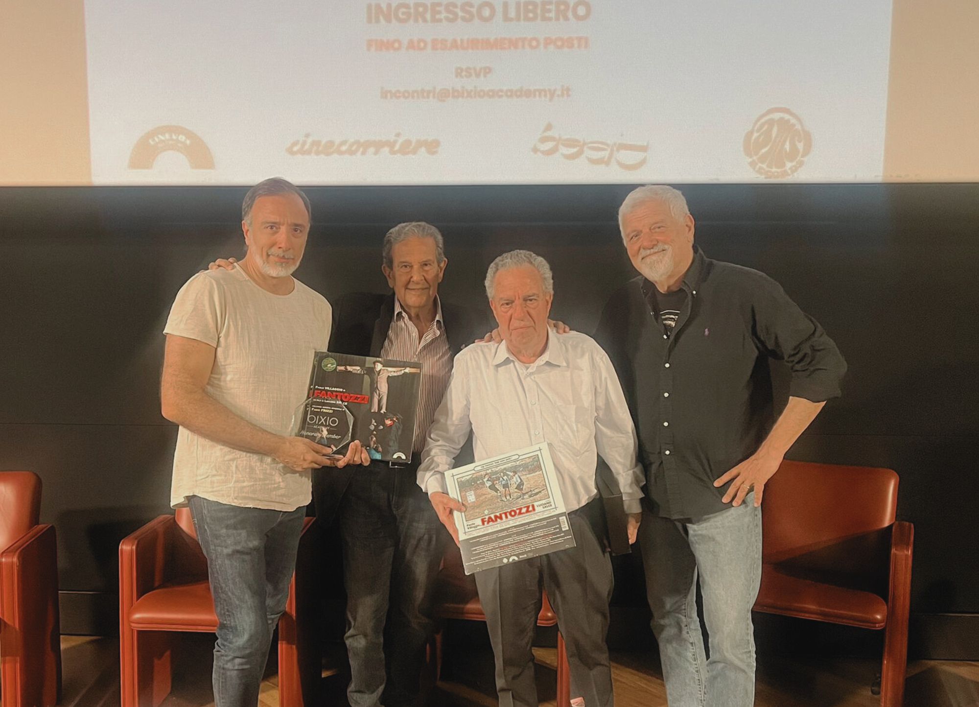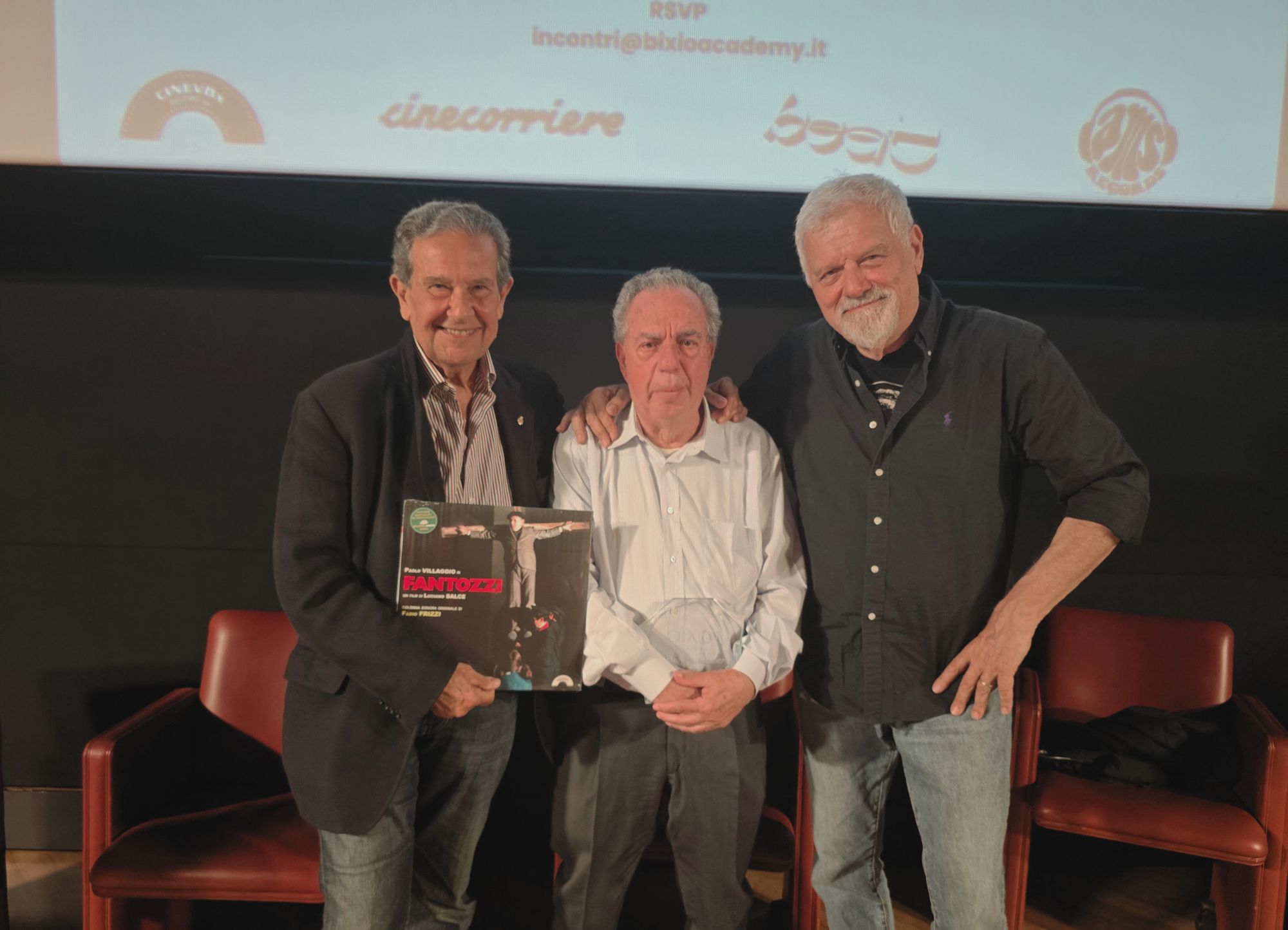 ‘Fantozzi… Controtempo’ – questo il titolo – è stato organizzato dalla Bixio Academy, condotto e moderato dal giornalista e autore Renato Marengo, ha visto protagonisti sul palco Fabio Frizzi, Franco Bixio e Vince Tempera – compositori delle iconiche colonne sonore dei primi film di Fantozzi diretti da Luciano Salce – autentico ingrediente del successo cinematografico della saga.