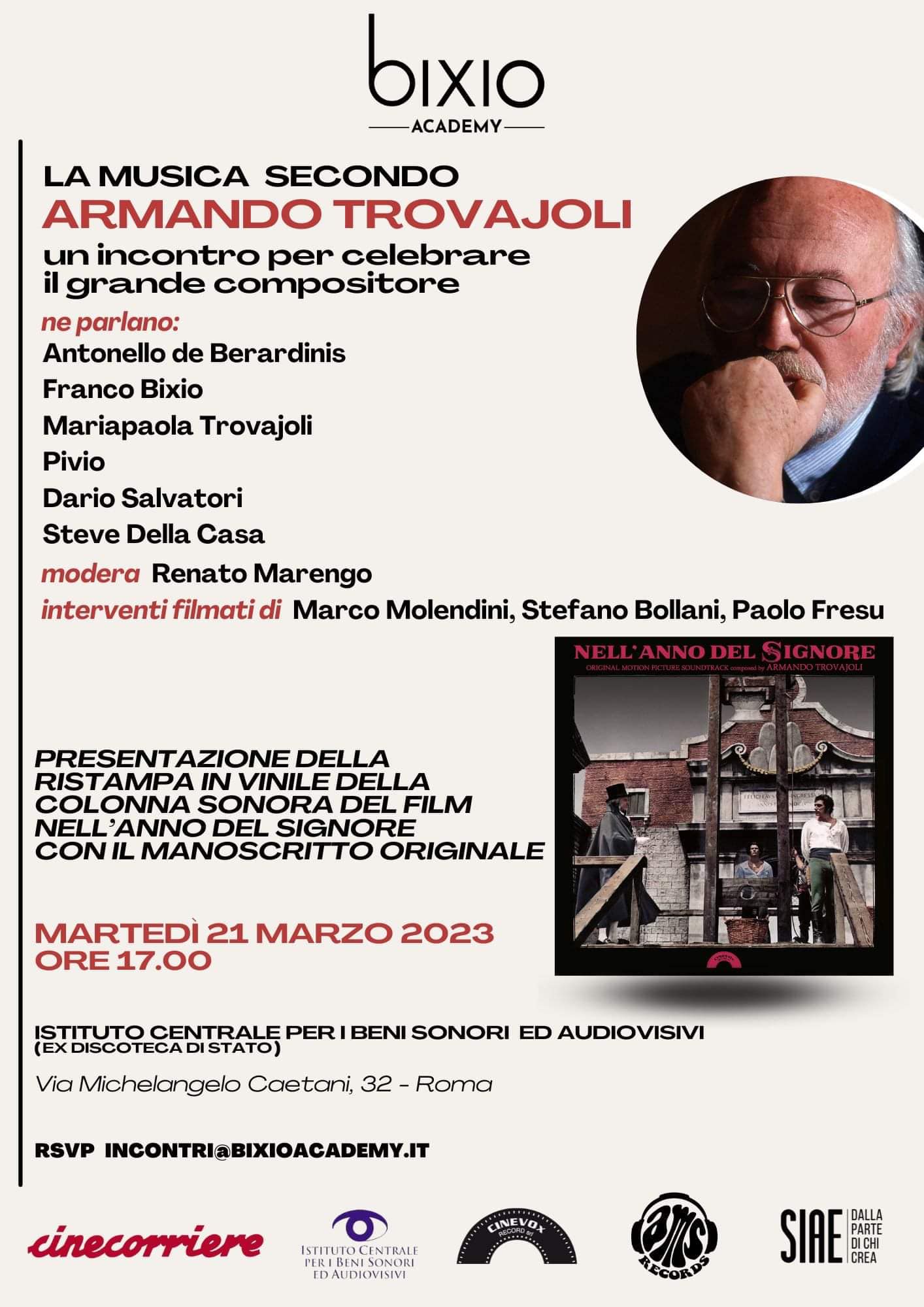 Il 21 Marzo, si è svolto in occasione del decennale della scomparsa di ArmandoTrovajoli l'evento "La musica secondo Armando Trovajoli" Organizzato da Franco Bixio, con la Bixio Academy, in collaborazione con Mariapaola Trovajoli, e SIAE, Cinecorrere News e Ams Records, per celebrare il grande compositore nella speciale location dell’ICBSA - Istituto Centrale per i beni sonori ed audiovisivi. Per l’occasione è stata presentata la ristampa, a tiratura limitata in vinile, della colonna sonora de “Nell’anno del Signore” che il Presidente di Cinevox Franco Bixio ha ufficialmente regalato all’ICBSA.